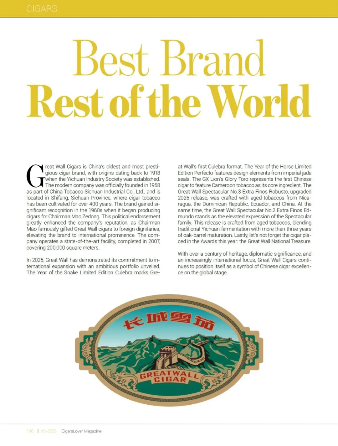 能获此殊荣的长城雪茄,底蕴深厚且实力过硬❗