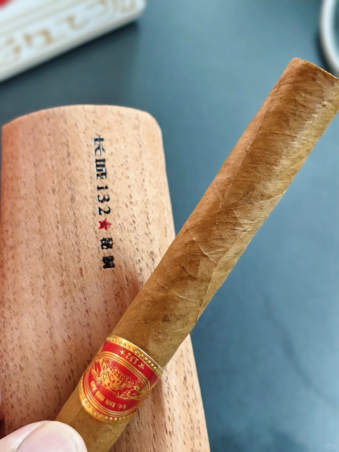 作为国产雪茄的代表作之一,132秘制的卷制工艺很讲究,燃烧均匀,灰也很紧实。长度和环径的比例刚刚好,握在手里很有质感,拍照也特别出片📸。