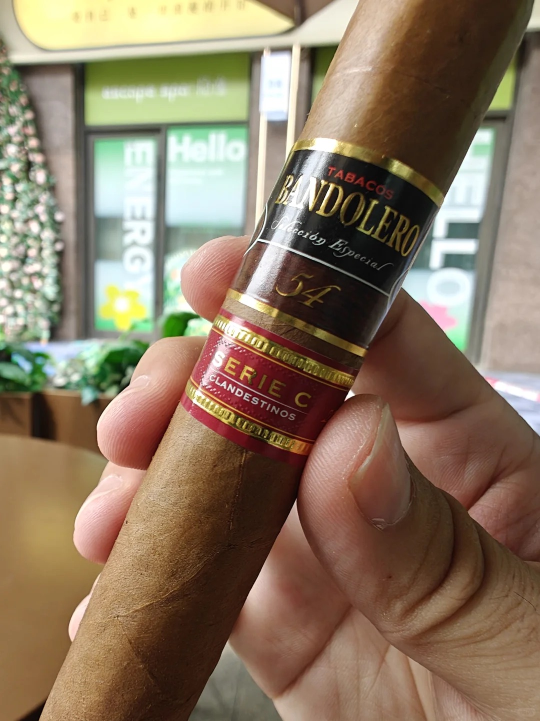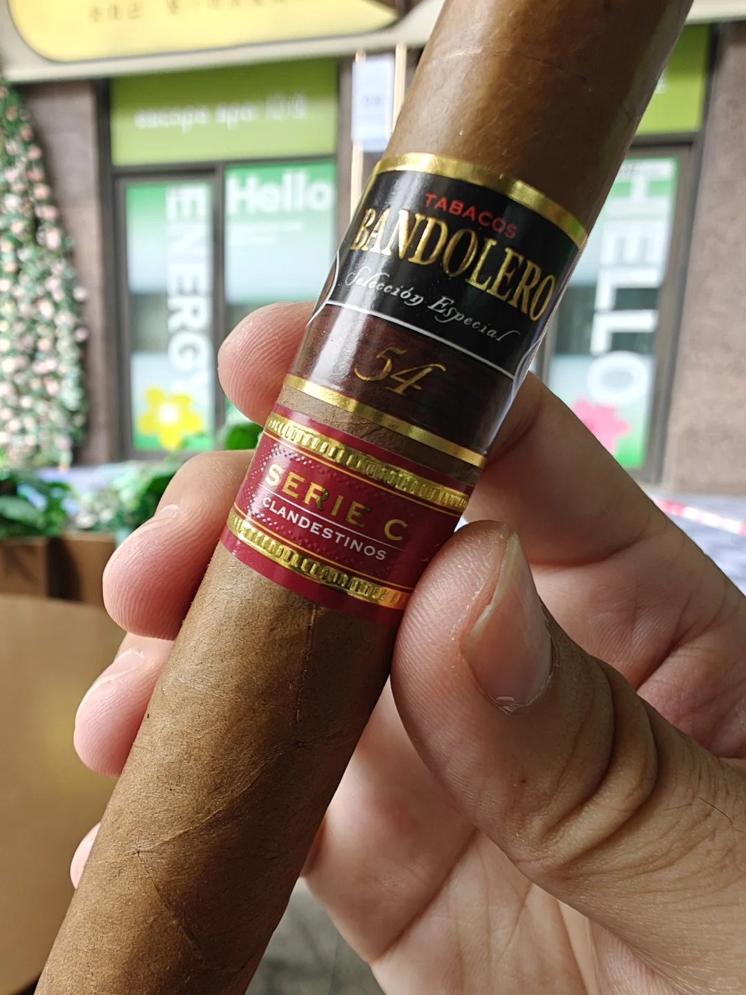 今天搞一支好友分享的Bandolero Serie C Clandestinos Colosales雪茄,尺寸为6x54,大toro尺寸,所以有一个醒目的54茄标,作为精选烟草公司下的低价产品在20刀左右的赛道开始卷。Bandolero这个牌子在国内称为绿林好汉,有C系列(Clandestinos)、A系列(Aventureros)、T系列(Traficantes)和精选(Premium)。个人抽过A和C的几支,总体感觉下来C比A更有老古巴茄的风格,并且整体质量还都比较上乘,对得起所在的价位。