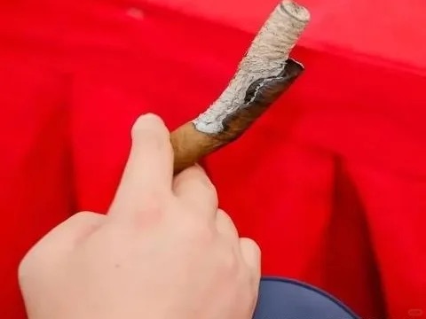 爆头型燃烧:当雪茄保存不理想,过于干燥时,容易出现这种情况。表现为雪茄在抽的过程中茄衣爆裂,头部像被炸开一样,抽的时候会有小的烟灰坠落。(图六)