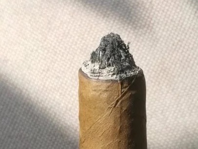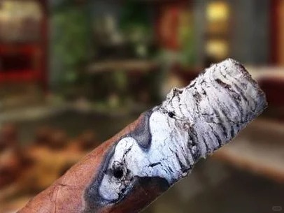 烟灰灰白细腻:燃烧良好的雪茄产生的烟灰应该是灰白色的,质地细腻紧实。非古巴雪茄的茄灰通常为纯灰白色,少带黑色,古巴雪茄的茄灰则以白色为主,略带更多黑色,只要白色占主体即可。