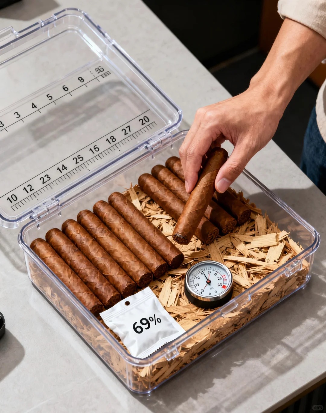 核心就是模拟古巴雪茄窖的环境!恒定湿度(65%-75%RH)+ 适宜温度(18-20℃),让雪茄缓慢醇化,锁住油脂和香气,抽的时候口感才顺、风味才足,相当于给雪茄找了个“专属保鲜仓”~